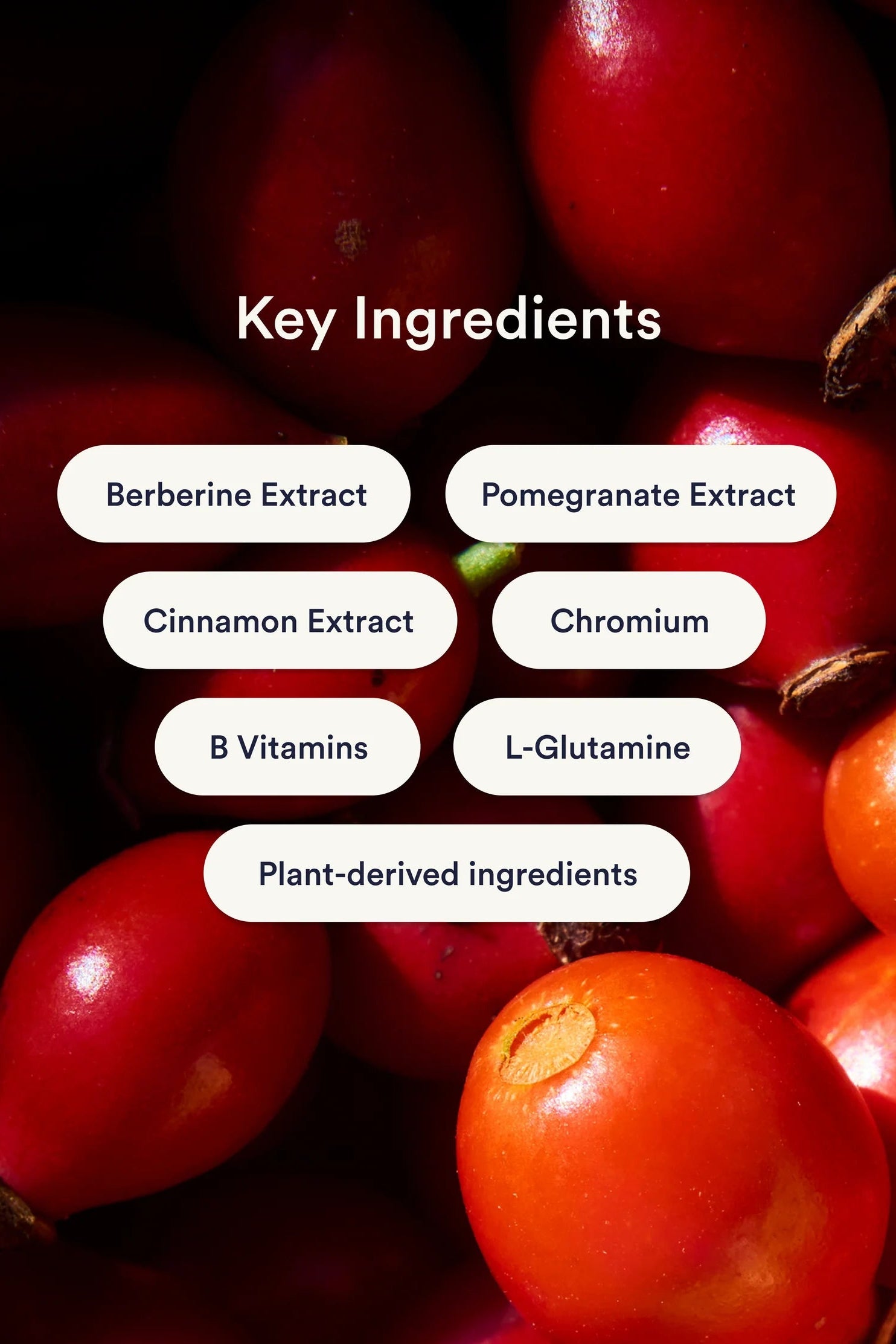 Weightless Blend: (Berberine Extract, Pomegranate Extract, Cinnamon Extract): 13 mg, Vitamin B Complex: Thiamine (B1), Riboflavin (B2), Niacin (B3), Pyridoxine HCl (B6), Folate (B9), Methylcobalamin (B12): 8 mg, 5-HTP: 5 mg, Caffeine (Guarana extract): 25 mg, L-Glutamine: 3.5 mg, Chromium: 35 mcg